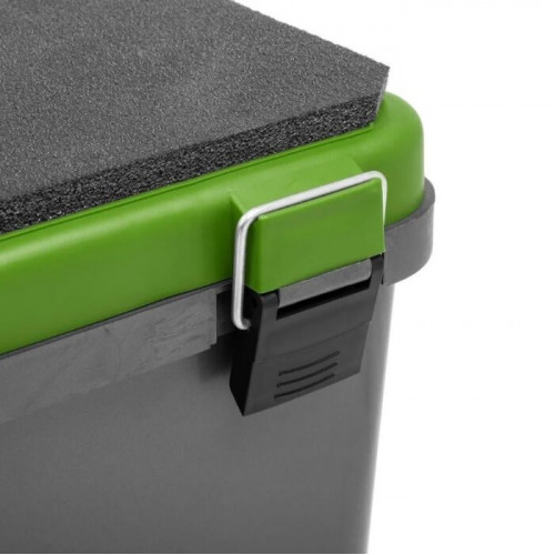 Дизайнът на тези зимни риболовни съндъци, осигурява всички необходими удобства. Оптимална форма и размери, стабилност, лекота за носене и използване. В седнало положение всеки човек ще се чувства комфортно. Материалът е устойчив на замръзване и удароустойчив. Пластмасата не абсорбира и не позволява преминаването на вода, не се поддава на деформации и отлично запазва оригиналната форма на кутията, дори и при по-тежки рибари. Максималното натоварване на кутия е 130 кг. Лесно се мие и не абсорбира миризми.Функционалното основно отделение с обем 19л., в което можете да поставите термос, храна и други необходими неща. От вътрешната страна на капака има 4 прозрачни затварящи се кутии за мормишки, куки и други дребни аксесоари. Органайзерът под капака е с две големи отделения, които можете да разделите с подвижни прегради. Има и шест прореза за закрепване на балалайки.