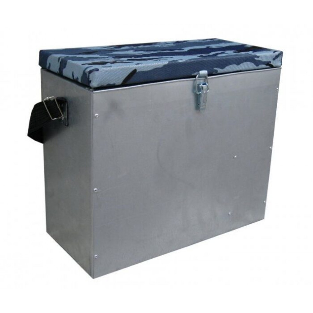 Метален сандък за зимен риболов, от поцинкована ламарина с дебелина 0.5мм. Вместимостта на сандъка е 23л. Удобна седалка от полистиролна пяна.