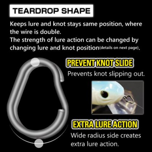 Tear Drop Split Ring са халки от неръждаема стомана в черен цвят с хромирано покритие. Произведени са със специална капковидна форма, която подобрява представянето на примамките и предлага надеждност от високо ниво. Формата предотвратява плъзгането на възела, което ги превръща в първокласен избор за риболовци, които искат да извлекат максимума от своите примамки.