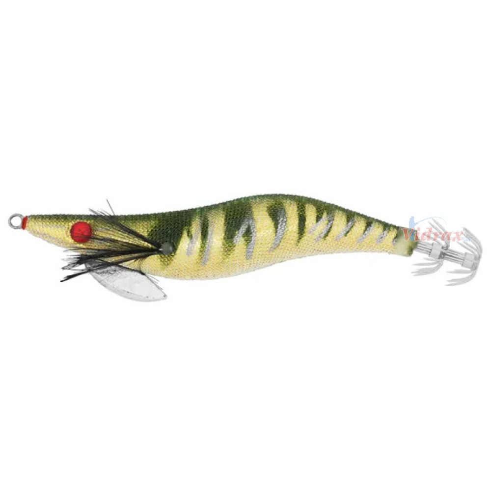 Серия калмарети Seika Squid Jig VLP Camo, покрити с висококачествен плат, украсени с изключително привлекателни окраски с характерен "Camo" ефект. Формата на тежестта позволява перфектен ъгъл на наклон от 45° и оптимална игра при търсене на сепии и калмари. Балансът на тежестта осигурява бавно потъване и отлични възможности за замятане при риболов от брега. Оборудвани са с двойна корона от много остри и проникващи куки, които минимизират риска от откачане на главоногите по време на изваждането. Флуоресцентна лента на гърба и светеща точка в основата на куките придават на примамката още по-забележим вид.