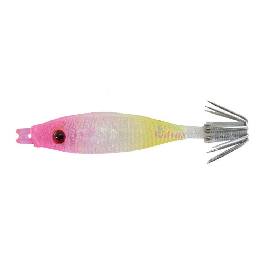 Примамки за риболов на калмари и сепия. Изработени от мек материал и покрити с коприна, което ги прави по-привлекателни. Химически заточени японски куки.