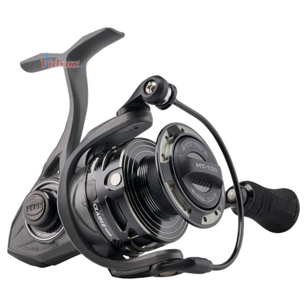 PENN® Clash™ II е най-добрата серия макари за риболов от брега. С нашата собствена CNC Gear™ технология за предавателен механизъм, която предлага много повече издръжливост и дълготраен живот и HT-100™ карбонова система издържаща на максимални натоварвания, Clash II може да се справи с всякакви крайбрежни видове, които закачите. Clash II е с изцяло метално тяло, което спомага за изключителната здравина и лекота на модела, дори и в случаи на прекомерно натоварване върху Drag системата. Макарата е снабдена със специални характеристики, които осигуряват допълнителна защита на компонентите. Разполага още с компютърно балансиран ротор и оразмерена алуминиева шпула за достигнат капацитет на влакното, а системата Leveline® Slow Oscillation System гарантира перфектно намотаване на всякакъв тип плетени влакна. Предлага се в различни размери от 1000 до 5000 подходящи за различни приложения. Избор, който всеки риболовец може да направи сам за себе си, в зависимост от стила на риболов, който практикува.