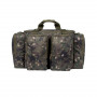 Trakker NXC Pro Carryalls се предлагат в три размера, среден, голям и XL. Всички те се гордеят с едни и същи професионални характеристики, но предлагат различни размери, за да отговарят на вашите нужди за риболов. Голямото основно отделение на чантата за риболов е подплатено и добре подплатено, за да побере и защити вашето оборудване при транспортиране. В основното отделение и всички външни джобове има здрави двойни ципове. Укрепеният капак на основното отделение гарантира, че несесерите запазват формата си, когато съдържанието вътре е извадено. Капакът на чантата за риболов на шаран може да се използва като маса за бивак, спестявайки място във вашето убежище. Вътрешно има голям мрежест джоб с цип от долната страна на капака. Увеличихме дълбочината на страничните джобове до 10 см от всяка страна, което позволява съхранение на обемисти предмети и освобождаване на вътрешно пространство в основното отделение за друга важна екипировка. Има още два големи предни джоба с цип и голям единичен заден джоб с цип. Капацитетът е огромен, независимо от размера, който смятате, че отговаря на вашите нужди за риболов. Всички NXC Pro Carryalls имат неопренови дръжки за лесно повдигане, конвенционални неопренови велкро дръжки за носене и подвижна регулируема неопренова презрамка. По какъвто и начин да транспортирате несесерите, ще сте сигурни, че комфортът винаги е налице. Задната част на чантата за риболов включва две ремъчни примки, които предлагат алтернативно закрепване за презрамка. Това позволява презрамката да се използва за закрепване на риболовната чанта върху рамката на количка или за закрепване към други съоръжения при товарене на лодки за транспортиране. Всички Pro Carryalls имат здрави PVC водоустойчиви основи, за да се гарантира, че съдържанието е защитено и при най-лошите условия.