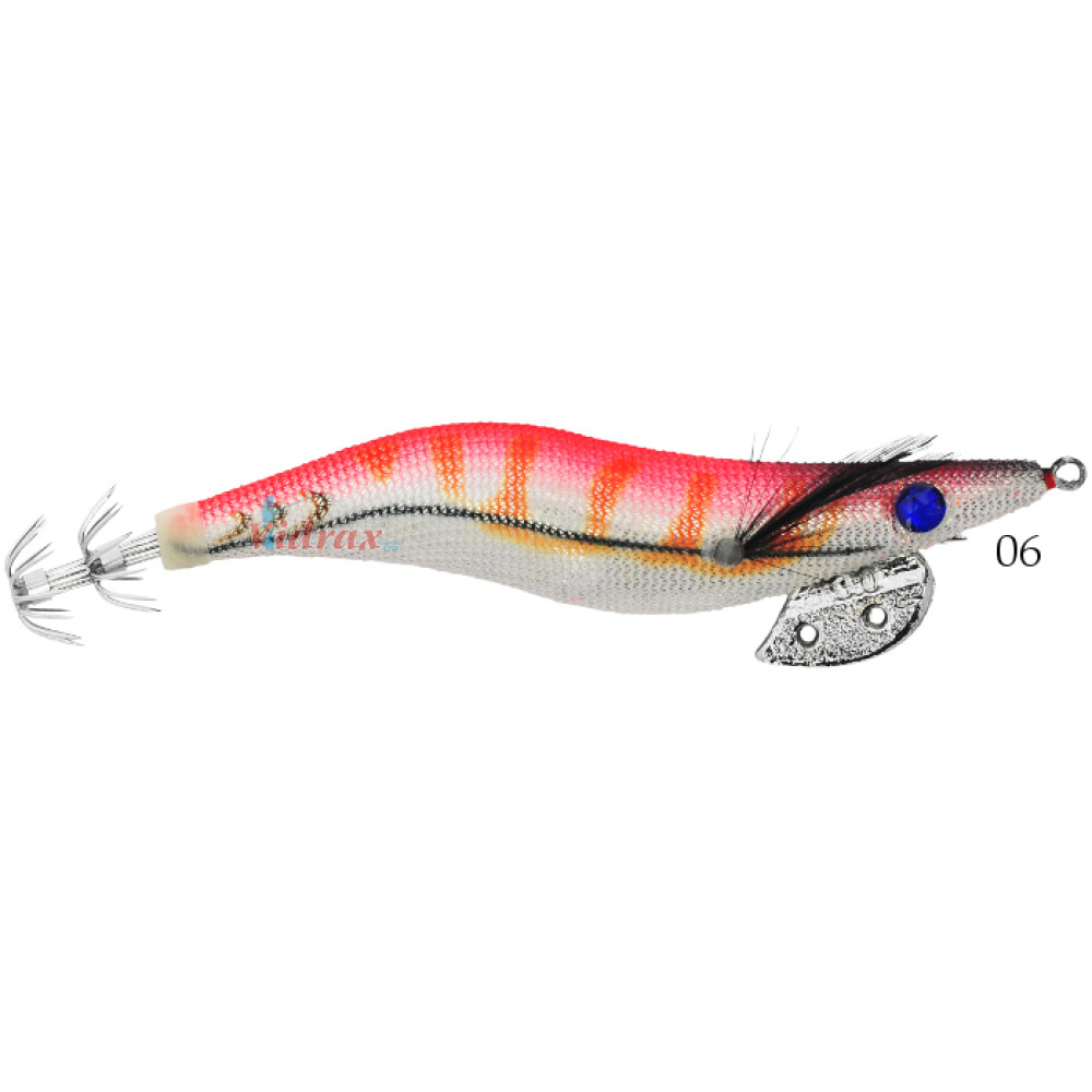 Добре балансирани, качествени примамки с химически заточени куки. Утежнени с тежест от 2,5 г за бавнопотъващо и реалистично действие. С ярки цветове и светещ ефект на опашката. Използват се за улов на калмари, сепии и октоподи.