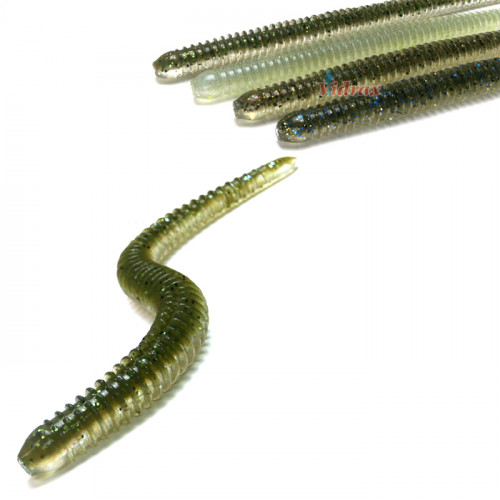 Силиконови рибки с формата на червей. Изработени са в Япония по специална технология, подобряваща баланса и играта. Шарката е съчетание от два цвята. Най-впечатляващата особеност на тези страхотни рибки е способността бързо да заемат хоризонтално положение при достигане на дъното. Специфичният пръстеновиден дизайн на тялото спомага на примамката да не задържа плевели по себе си, когато е с Тексаски монтаж. Централната линия на рибките ни насочва за правилно монтиране на куката. Със силен аромат на калмар и доказани резултати при използване с отежнени глави и различни видове монтажи.