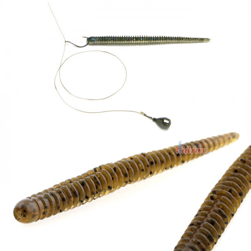 Силиконови рибки с формата на червей. Изработени са в Япония по специална технология, подобряваща баланса и играта. Шарката е съчетание от два цвята. Най-впечатляващата особеност на тези страхотни рибки е способността бързо да заемат хоризонтално положение при достигане на дъното. Специфичният пръстеновиден дизайн на тялото спомага на примамката да не задържа плевели по себе си, когато е с Тексаски монтаж. Централната линия на рибките ни насочва за правилно монтиране на куката. Със силен аромат на калмар и доказани резултати при използване с отежнени глави и различни видове монтажи.