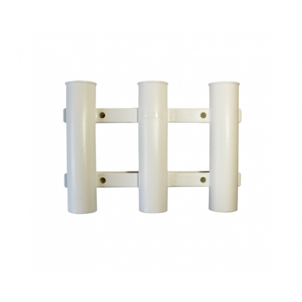 Бяла стойка за лодка с гнезда за 3 пръчки. Комплектът включва винтове за монтаж.