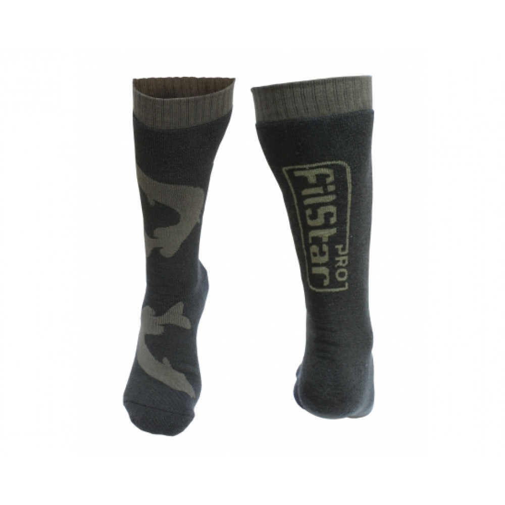 Термо чорапи FilStar Fishing Socks Pike са възможно най-добрият избор, който може да направите ако искате да осигурите отлична изолация за краката от студ в комбинация с естествен комфорт и абсорбация на влагата. Модел с по-висок конч, който е подходящ за риболов, пешеходен туризъм и различни зимни спортове. Голямото съдържание на висококачествена мериносова вълна осигурява мекота, комфорт и топлина по време на носене.