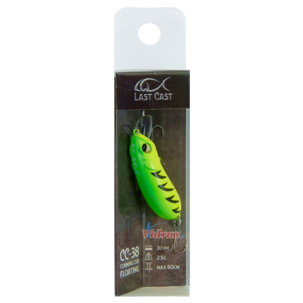 CC-38 е специално създаден от български риболовци в български условия. Преминал е през редица прототипове, докато достигнем до финалния вариант, който е най-успешен в нашите реки и водоеми за риболов на кефал. Всички, които участваха в разработката му са риболовци с изключителен опит и познания в спининг риболова. Това от своя страна доведе до невероятния резултат - именно воблер CC-38, който стига до дълбочина от 60 сантиметра!
