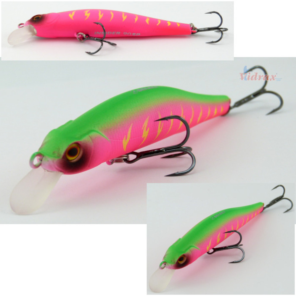 Може би Insider е най-универсалния туич воблер за щука. При дръпване Insider хаотично мята тялото настрани, понякога се завърта на 180°. Лесен като анимация, той работи добре при всякаква скорост на изтегляне, независимо дали е агресивно или спокойно потрепване. Може да се хвърля на невероятни разстояния, не само благодарение на рационализирания си компактен дизайн, но и благодарение на вградената магнитна система за хвърляне. Неутралната плаваемост кара Insider да виси в дълбините по време на паузи в изтеглянето, поддържайки повече или по-малко хоризонтална позиция. Освен щука, често може да се разчита на кълване на костур, в различни размери. Оптималният риболов за използване на Insider ще бъдат плитки езера и язовири, както и заливи на по-големи езера с дълбочина 1,5-3 метра - работи добре в близост до подводна растителност. Размер 90 ще бъде идеален и за нощен риболов на судак в реки и езера. Insider се предлага в две версии: 90SP и 110SP.