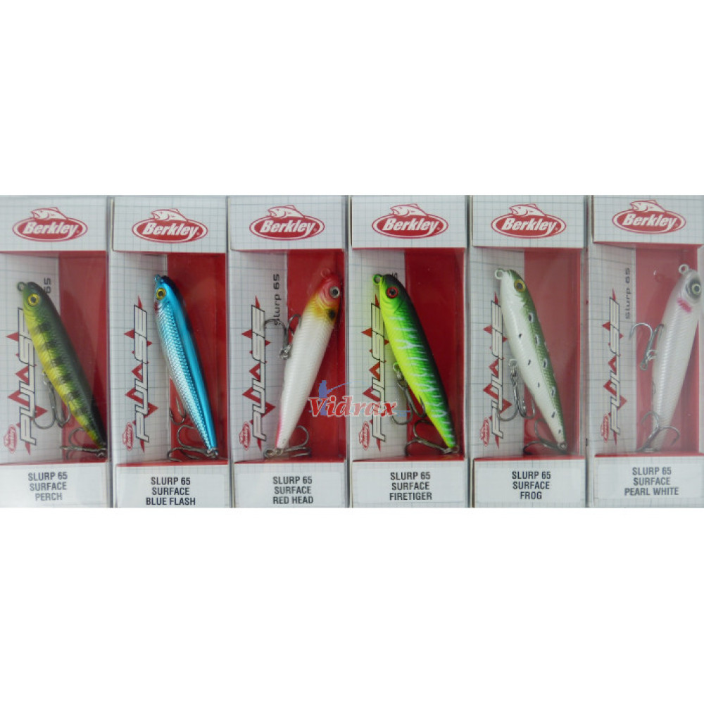 Berkley Pulse Slurp е втората повърхностна стръв от серията Berkley Pulse и се предлага в 2 дължини - 6,5 см и 8,5 см, които го правят променлива опция за риболов в горните слоеве на водата. По-малката версия е идеална за риболов на костур и распер в средата на лятото, когато малките рибки са все още малки и хищниците са се насочили към тях. По-голямата версия може да се използва за риболов на костур, щука и распер в сладки води, както и за риболов на лаврак в солена вода. И двете версии се предлагат в 8 цвята всяка.