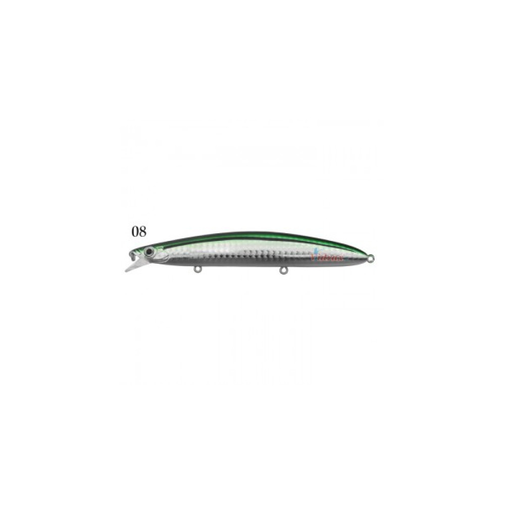Висококачествен плаващ воблер със система от тракащи вътрешни сфери. По време на своето движение, произвежда силни вибрации, което раздразва и привлича хищниците. Предназначен за използване в солена вода. Забележителното визуално въздействие и линейното движение са основни характеристики на този воблер. Снабден е със заострени тройни куки. Изключително ефективен при улов на Лефер и Лаврак в Гърция.