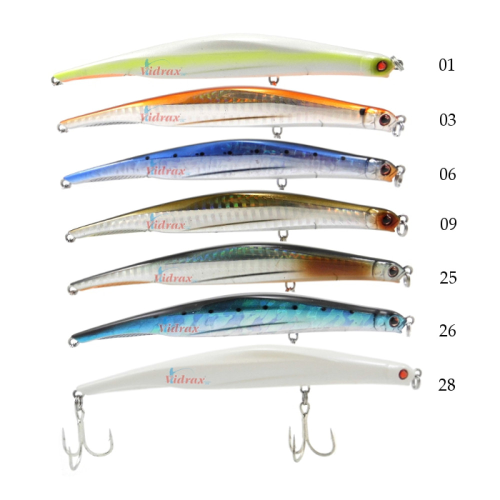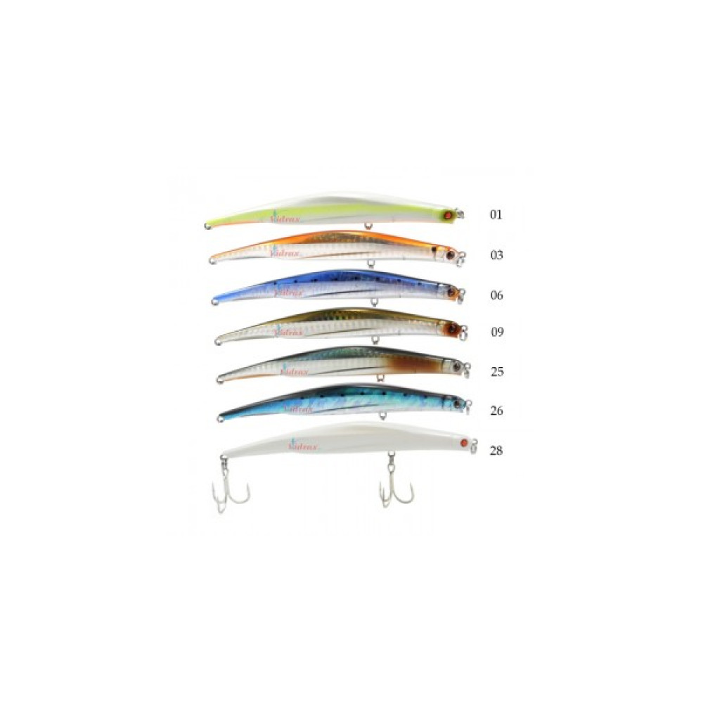 Агресивна примамка без лопатка, идеална за дълъг кастинг в пенлива вода или на плажа. Бързо потъваща с хоризонтално спускане и леко наклонена устна, така, че да може да се използва за вертикален риболов. Изключително игрива във водата.