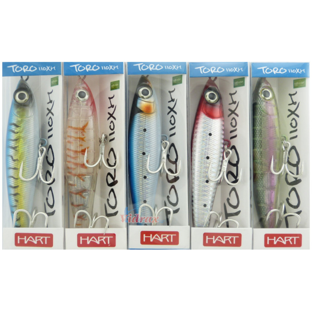 Дебел, здрав и с подсилено тяло и здрави тройни куки новият воблер Toro XH е предназначен за мощен риболов. Конусовидната му форма гарантира отличен кастинг на разстояние до 10 метра, независимо от неблагоприятните метеорологични условия.
